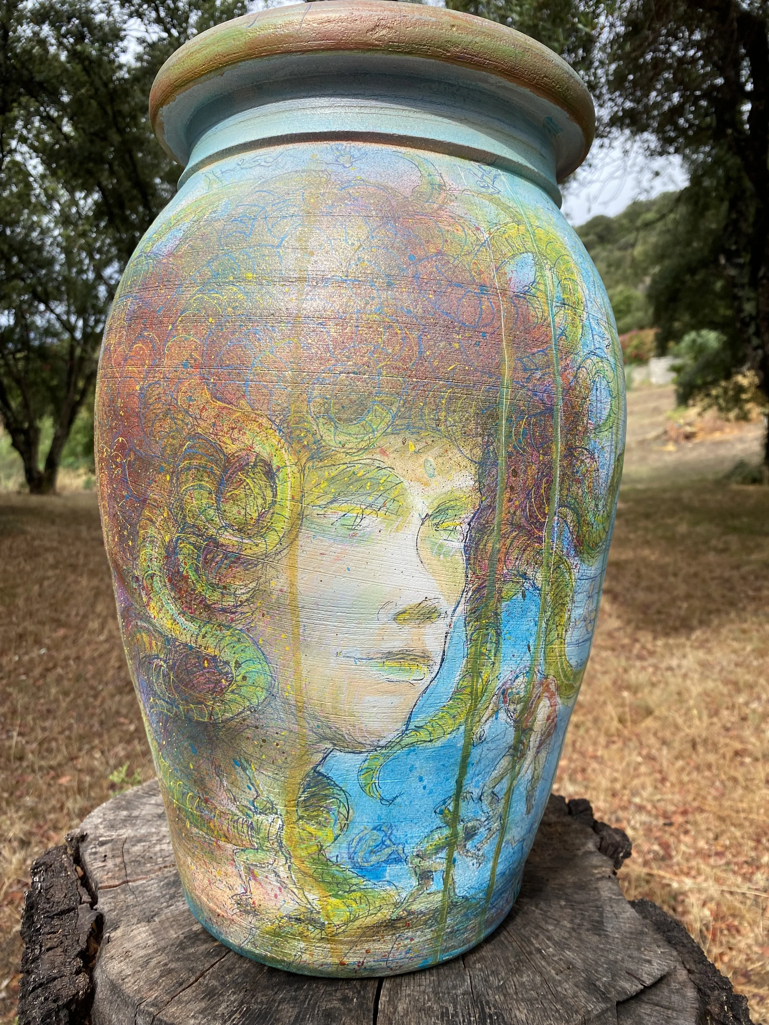 " Méduse verte" A244 Amphore en terre cuite 45x28x28cm