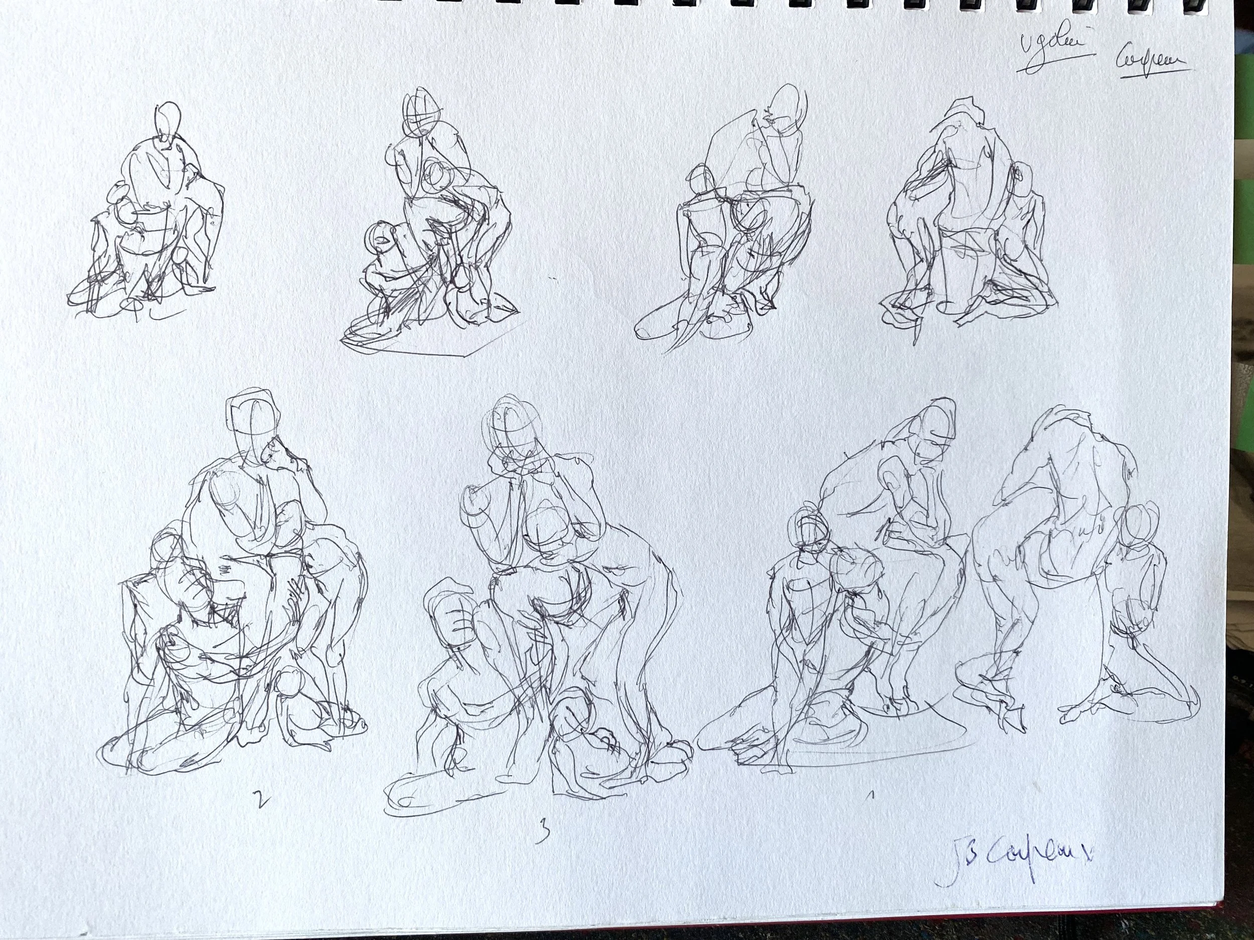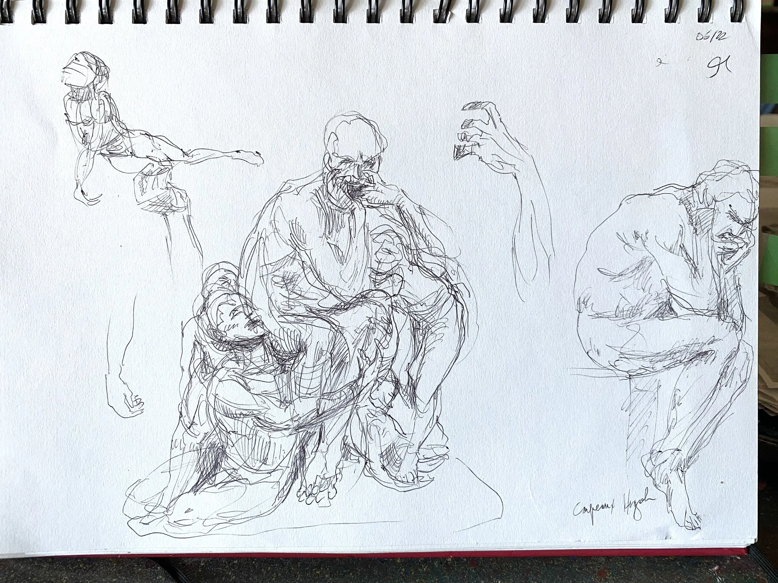 Papier 21x29,7cm 2024 après l'ensemble sculpté J.B. Carpeaux " Ugolin entourés de ses enfants" 1857/1861