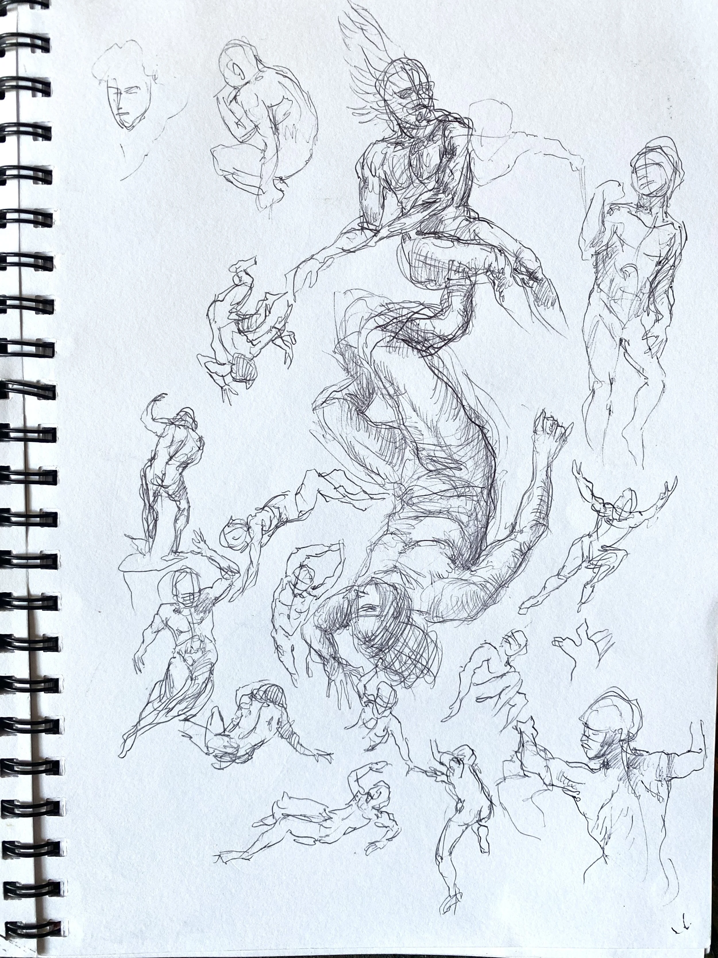 L’esquisse est comme un laboratoire où la forme s’accomplit dans un mouvement répété et obstiné. La main s’active et fouille, les traits prolifèrent et se corrigent, les contours s’accumulent avant que la forme juste, apparaisse et s’impose enfin.