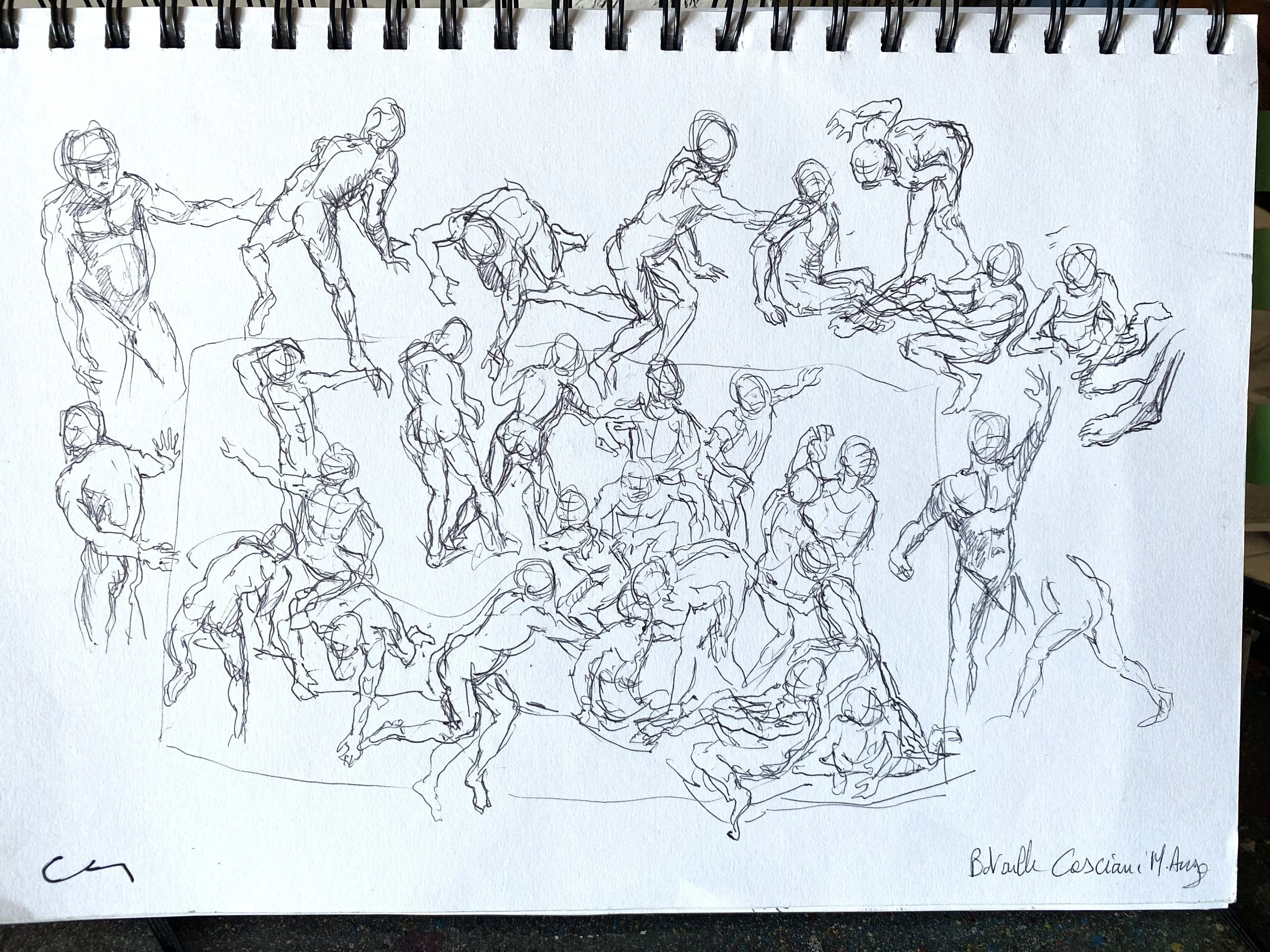 Papier 21x29.7cm 2024 d'après le dessin d'Aristotele da Sangallo "Bataille de Casciani"
